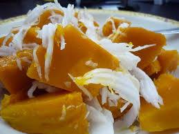 เนื้อหน้าอกไก่อบคู่กับฟักทองนึ่งคลุกมะพร้าวขูดโรยเกลือกินพร้อมซอสมะเขือเทศ...อร่อยมาก ๆ ขอบอก
